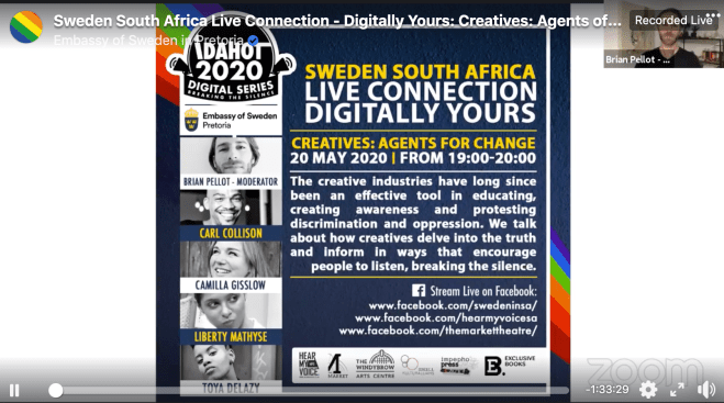 After five days, the panel had already been viewed more than 13,000 times. You can watch it on the Embassy of Sweden in Pretoria’s Facebook page until July 20, 2020.